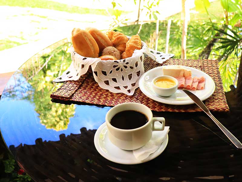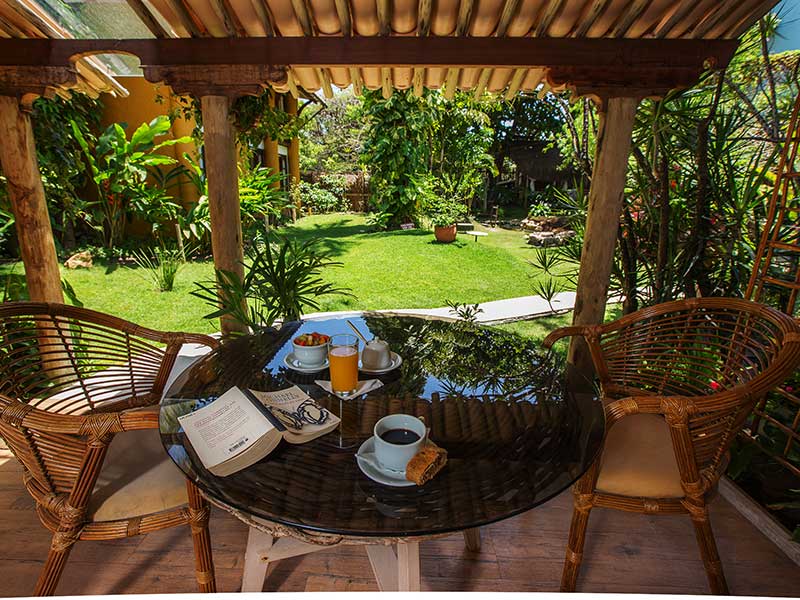 No delicioso café da manhã, você pode saborear a variedade de frutas, sucos, pães e comidas típicas da região, preparados com ingredientes frescos e de qualidade. Além disso, você pode desfrutar de uma massagem na tenda zen, ler um livro perto da fonte do jardim, ou simplesmente relaxar ao som do lago e suas cascatinhas.
