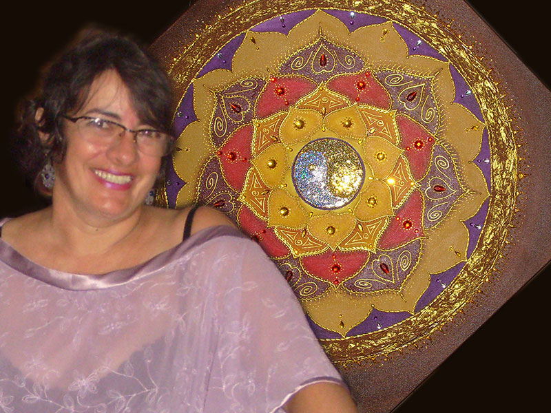 De origem angolana e licenciada em artes plásticas pela UFBA, Guidha traz nas suas obras elementos da natureza e memórias da infância. Fez na Pousada uma exposição de quadros para pessoas com deficiência visual e mandalas.